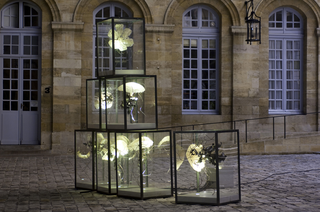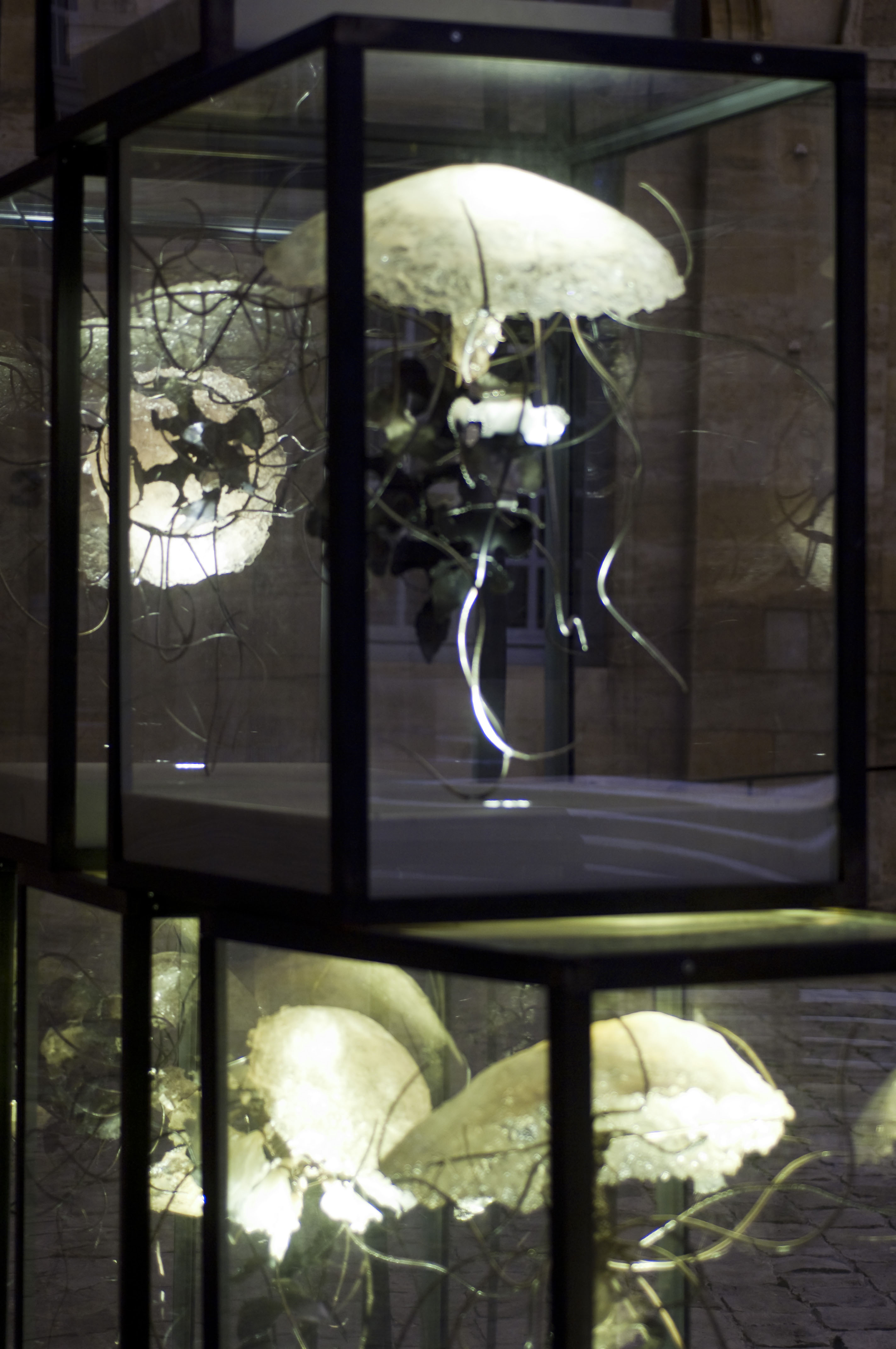 Si pour cette installation, j’ai choisi de travailler sur les méduses, c’est que contrairement à une multitude d’autres animaux, ce n’est pas une espèce en voie d’extinction. Bien au contraire !